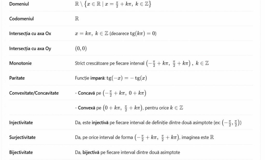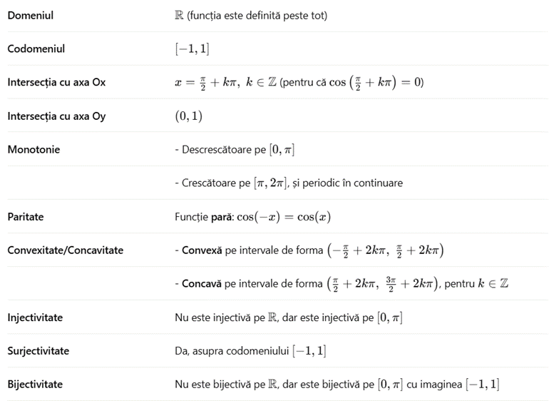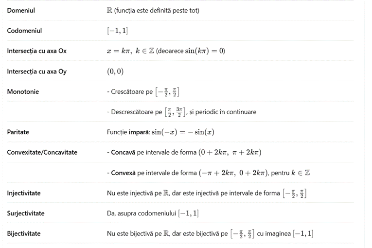 Proprietățile funcției: